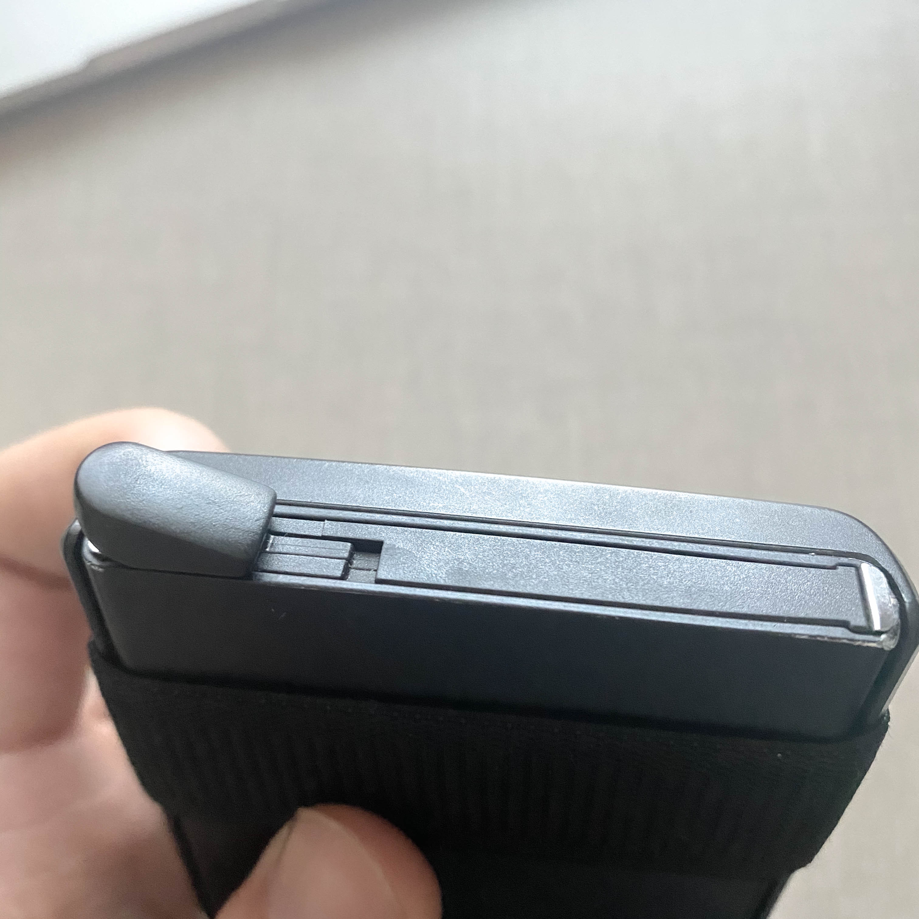 떨어 뜨리면서 생기는 생활기스. 좌) 버튼부분 이음새 부분이 금 / 우) 모서리의 기스 제품이 플라스틱이다 보니 가죽 지갑에 비해서 떨어뜨릴 때 소리는 많이 나는 편입니다. 또한.. 흠집 또한 많이 나는 편입니다. 모서리 부분은 인도에서 떨어뜨려 생긴 생활 흠집입니다…. 안타깝게도 위 이미지의 좌측을 보면 아시겠지만, 튀어나온 버튼 부분이 떨어뜨릴 때 마다 부딪히다 보니 얇은 이음새 부분이 금이 가더군요.. 사용하는 데 지장이 없어 아직도 사용 잘하고 있습니다.