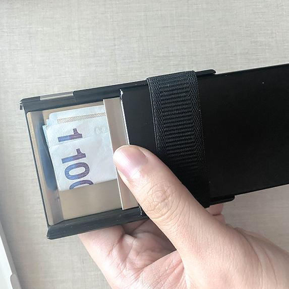 제품은 버튼을 당기면 슬라이드로 올라옵니다. 카드는 총 6개까지 들어갑니다. 카드는 버튼을 누르면 올라오는 형식입니다. 저는 맨 앞에는 자주 사용하는 카드. 맨 뒤에는 교통카드를 넣고 다닙니다. 버튼을 누르면 탁- 나와서 그 카드만 찍으면 편리하거든요. 일반 가죽 지갑에는 카드가 겹치므로 사용하는 카드만 꺼내서 찍어야 하는 방면, 보안 제품은 카드가 나오니 편리하게 찍을 수 있으니깐요. 최근 지폐의 사용이 조금 많아져서 다시 가죽 지갑을 다시 사용하였는데, 매번 대중교통을 이용할 때마다 꺼내서 찍기가 매우 불편해서 다시 시크리드를 사용하고 있습니다.